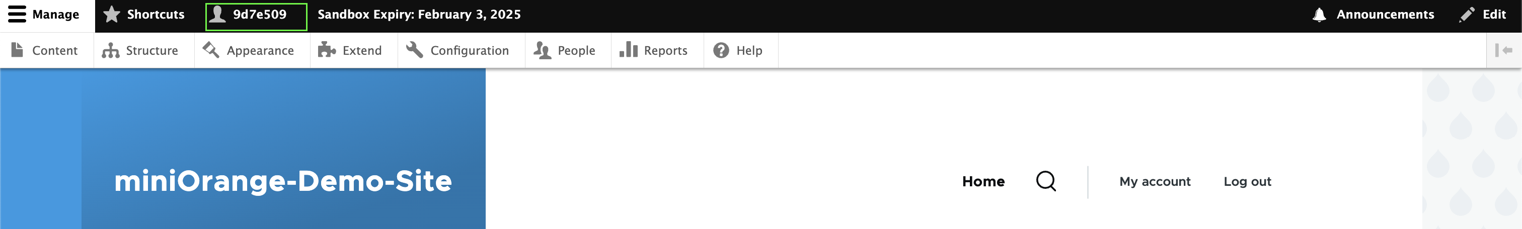 - Login to your Drupal dashboard account. Your User name will be displayed at the top next to the user icon.