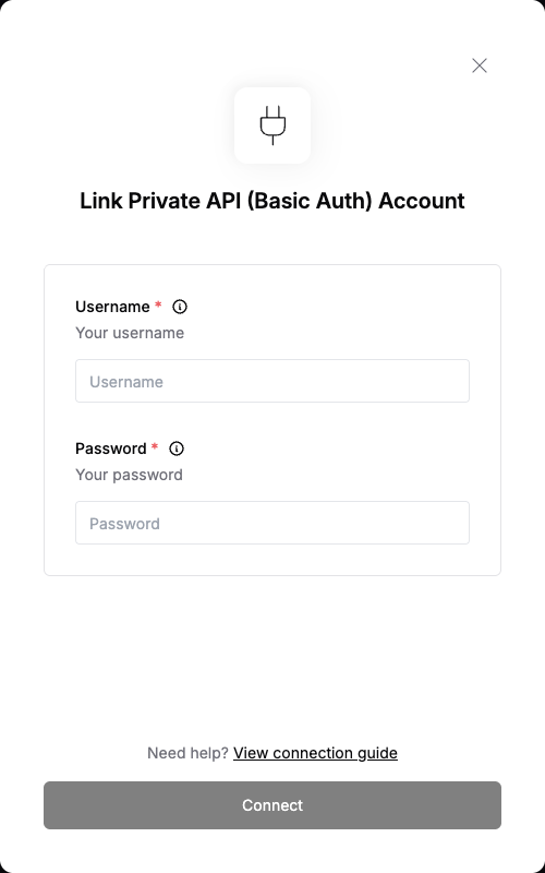 This guide will walk you through setting up a connection with Private API (Basic Auth).